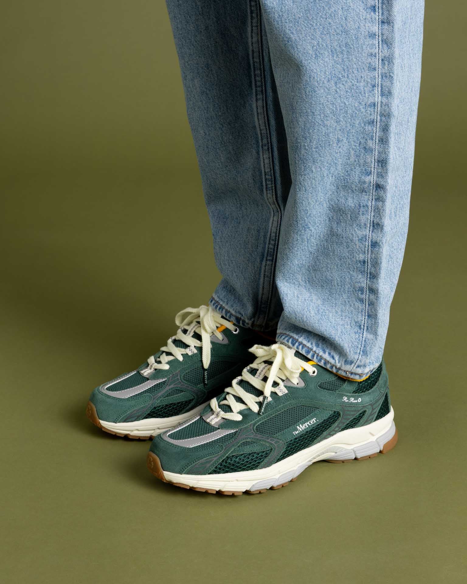 Vintage-Wildleder in Mercer-Grün. Mit unserem saisonalen gestickten M an der Ferse.