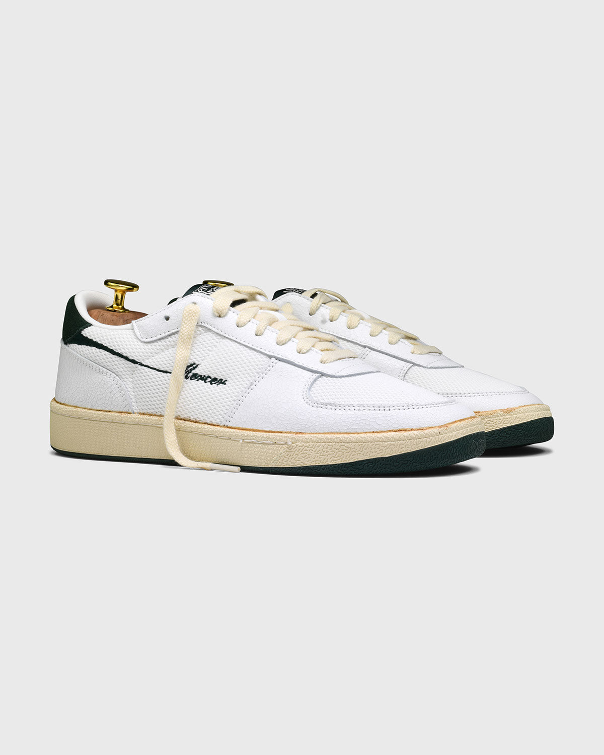 Inspired by my father's tennis day in the early 70's, this was the shoe that got me on the court. He made it look that good, and of course after a three setter on red clay - they looked a certain way. This is what made The Re-Tennis, a hand distressed, late 70's classic tennis silhouette including the yellowed outsole, the recycled leather, the unique last, the textured laces and the recycled mesh.