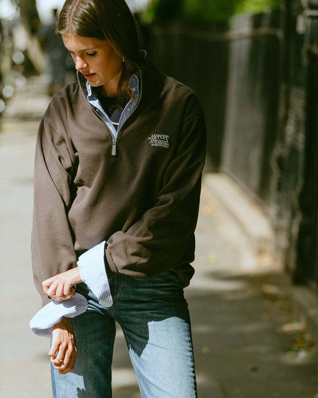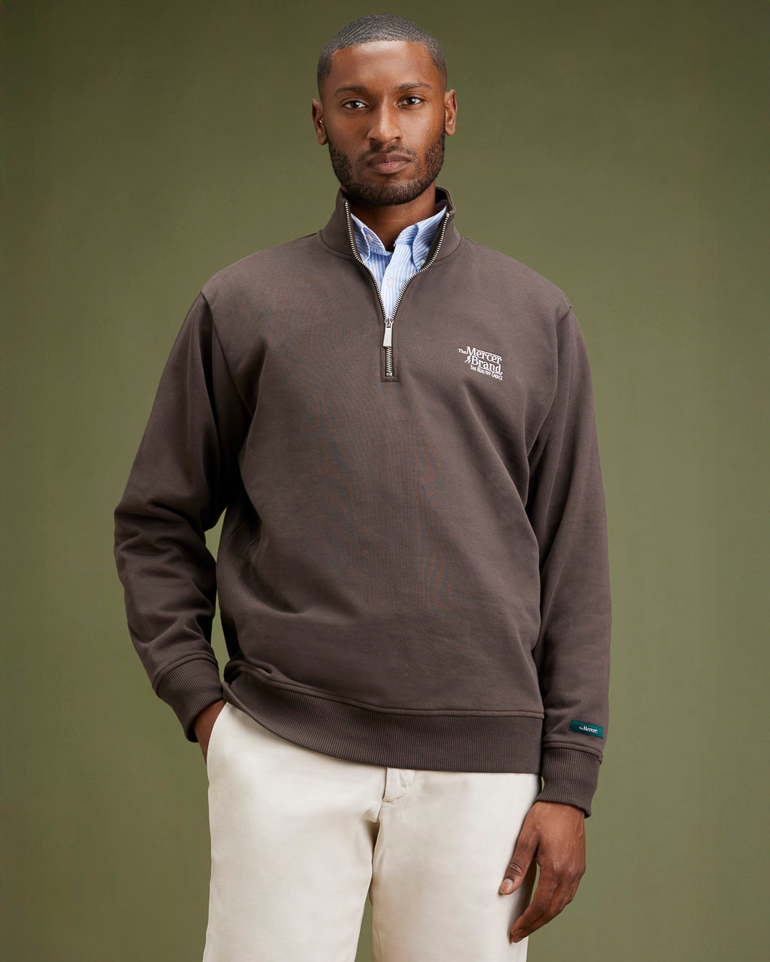 The Mercer Le Quarter Zip, c'est ton basique décontracté, fait à 100 % en molleton américain de coton. Ce Quarter Zip a une coupe oversize, ce qui en fait un truc indispensable dans ta garde-robe.