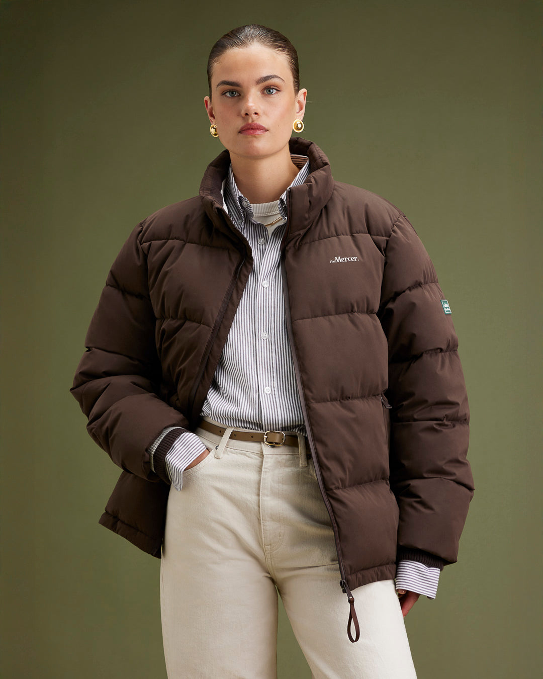 Introducing our Mercer Puffer Jacket, available in three colorways. Filled with eco-friendly SORONA® plant-based polymer. The water-repellent outer layer and lining are both crafted from recycled nylon, making it as practical as it is environmentally conscious. A timeless piece of sustainable outerwear, crafted to last and designed with the planet in mind.