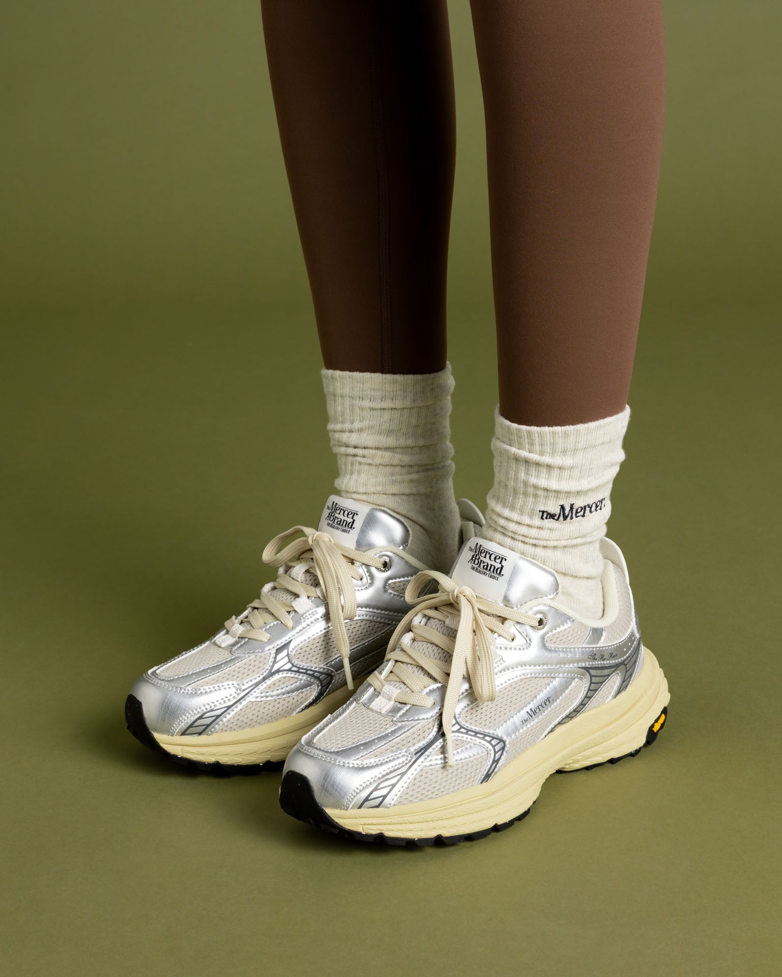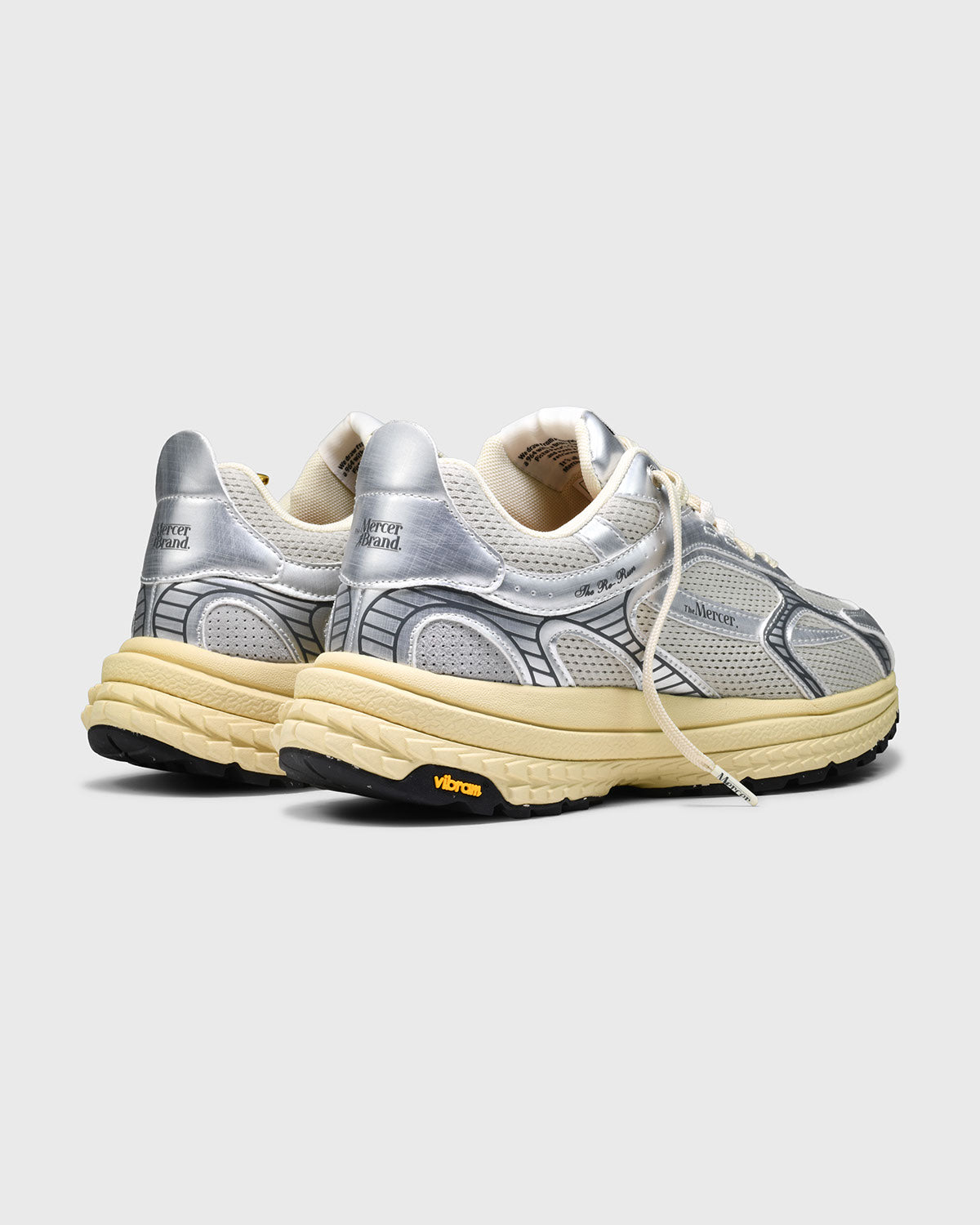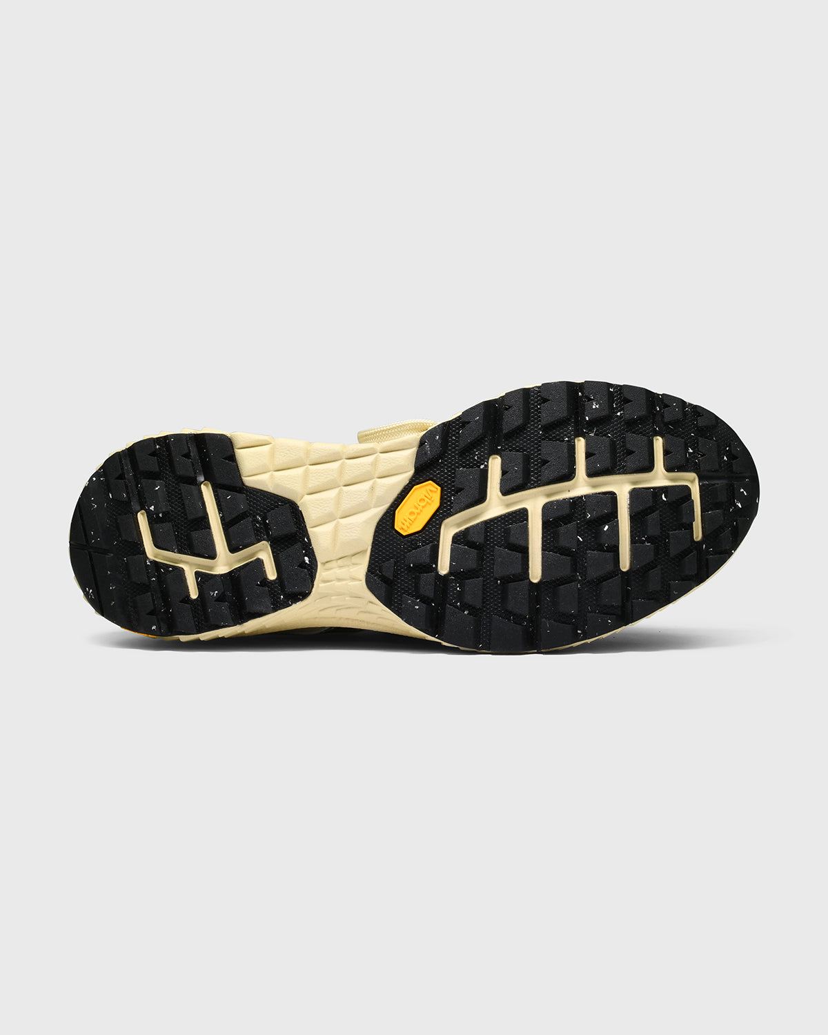 Together with Vibram we developed a two piece stacked EVA midsole finished with Vibram Megagrip rubber outsole. A high performance rubber compound that offers unparalleled grip. The Re-Run Vibram is part of our Grand Slam tier, these are produced in limited batches and only available in a small selection of stores.